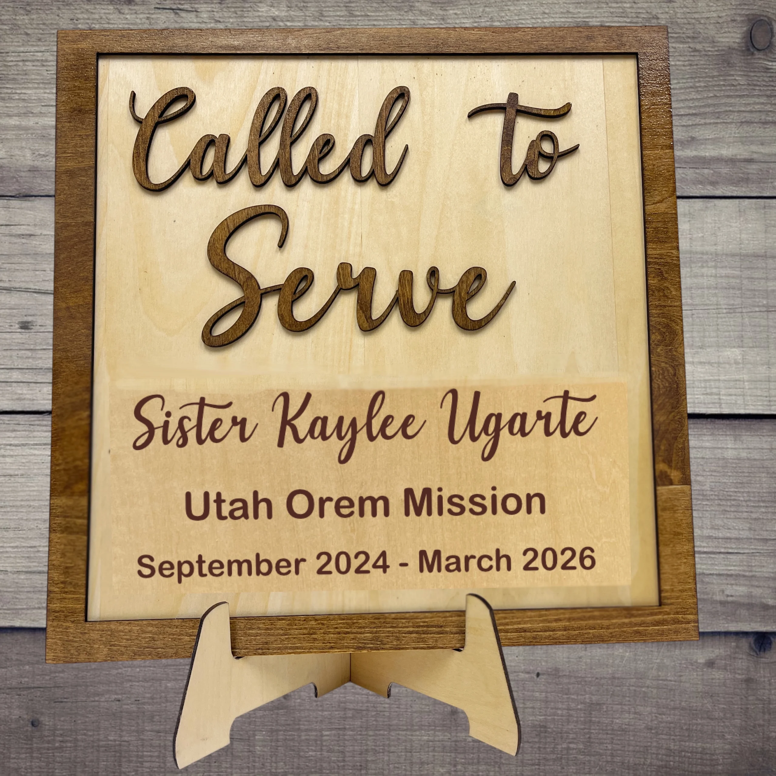 I love my missionary plaque. I couldn’t imagine what it would look like in real life, but when I opened it, it far exceeded my expectations. The raised letters really add a unique dimension to the plaque. I love the different fonts. The font that was chosen for my granddaughter’s plaque is perfect!!